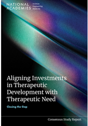 | Aligning Investments in Therapeutic Development with Therapeutic NEED: Closing the Gap The report highlights a persistent mismatch between biomedical R&D investments and actual public health needs in the U.S. The report found that many high-burden diseases lack adequate therapeutic development, revealing systemic misalignment. The report also emphasizes the need for improved data infrastructure to track disease burden and unmet medical needs, enabling more effective resource allocation. It calls for coordinated efforts across public and private sectors to align investments with therapeutic gaps. Policy reforms, targeted funding, and aligned incentives are proposed to ensure that therapeutic development addresses the areas of greatest need. By National Academies of Sciences, Engineering, and Medicine. 2025. Washington, DC: The National Academies Press. https://doi.org/10.17226/29157 |